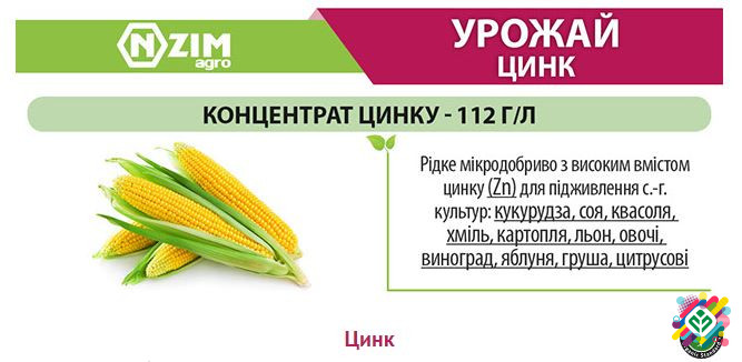 Цинк є рідким мікродобривом з високим вмістом цинку (Zn), яке міститься у легкодоступній формі для позакореневого підживлення сільськогосподарських культур. Це допомагає ефективно коригувати живлення культур, які чутливі до нестачі цинку, такі як кукурудза, соя, квасоля, хміль, картопля, льон, овочі...