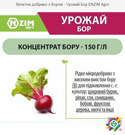 Борон - це рідке мікродобриво з високим вмістом бору (B) у формі боретаноламіну, що є легкодоступною формою бору для позакореневого підживлення сільськогосподарських культур. Бор є важливим мікроелементом, необхідним для нормального росту і розвитку рослин. Він особливо важливий для бор-чутливих кул...