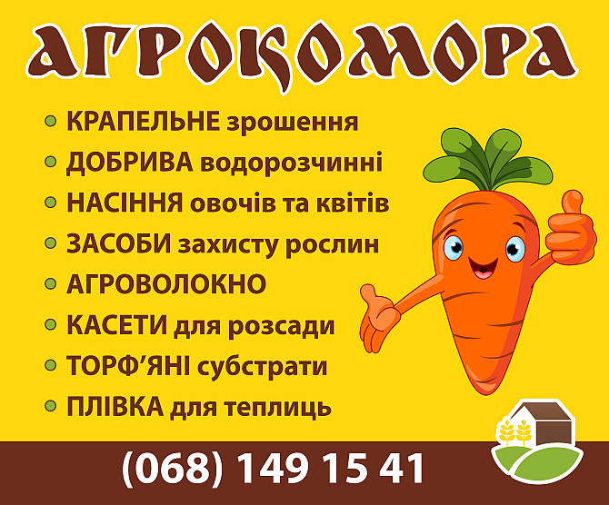 надсилаю вам інформацію про нашу компанію: - Основний напрям це системи крапельного зрошення: проектування монтаж та поставка всіх необхідних комплектуючих. -Широкий вибір водорозчинних добрив для фертигації та листового внесення, антистресанти та стимулятори росту а також кислоти ( ортофосфорна, б...