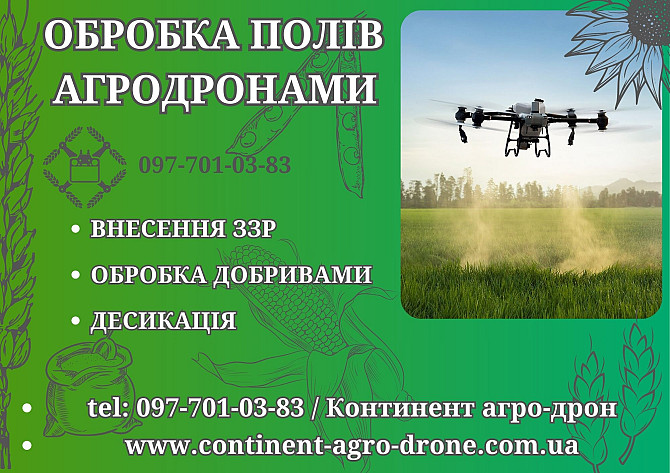--- Послуги агродронами – швидко, точно, ефективно! --- Пропонуємо професійне обприскування полів дронами, внесення ЗЗР, десикацію за допомогою новітніх дронів-обприскувачів! Наші послуги: ✔️ Обприскування посівів дронами ✔️ Внесення засобів захисту рослин (гербіциди, фунгіциди, інсектициди) ✔...