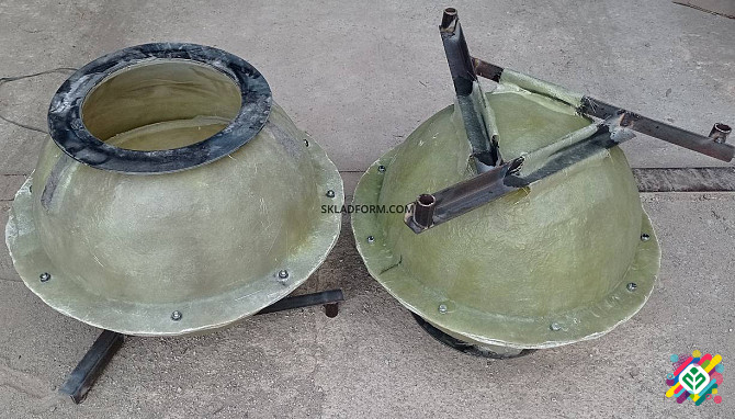 Форма для виготовлення бетонної антипарковочної сфери Ø 25 Стеклопластикова форма для виробництва бетонної антипарковочної або декоративної кулі Характеристики: - Складається з двох частин, з'єднаних болтами; - Має отвір для заливки бетону; - Після затвердіння пласкість, яка служила відверстієм д...