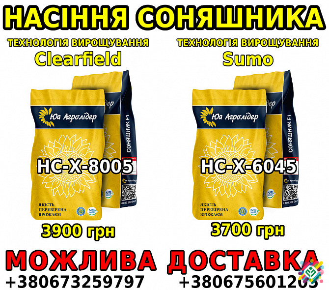 Семена соняшнику та кукурудзи Компанія ЮГ Агролідер представляє високоякісні насіння соняшнику та кукурудзи, які відомі своєю високою урожайністю та стійкістю до шкідників та хвороб. Наш асортимент включає такі сорти: Соняшник: 1. ZLATIBOR (A-G+): ціна - 2550 грн/п.ед. 2. НС Орфей (ВИСОКОНОКЛЕЇНОВИ...