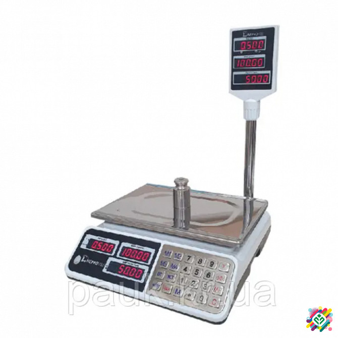 Модель: Ваги торгові двосторонні з двосторонньою стійкою ВТД-ЛД. Характеристики: - Максимальна вага: 15 кг - Мінімальна вага: 40 г - Ціна поділки: 2 г - Розмір платформи: 335 х 230 мм - Робочий інтервал температур: -10°C до +40°C - Вбудований акумулятор: 40-50 год - Функція сумування до 99 покупок ...
