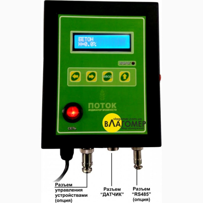 Вимірювач вологості - вологомір "Потік" призначений для вимірювання вологості зерна, насіння, дрібних часток та інших гранульованих та порошкоподібних продуктів і матеріалів у бункері, сушарці, шнеку, на конвеєрі. Метод вимірювання ґрунтується на ефекті поглинання електромагнітної енергії високої ча...
