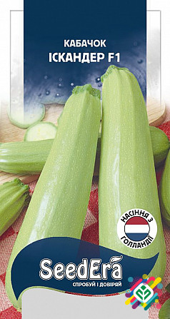 Мінімальне замовлення: 10 штук. Раннеспела сортова рослина з високими смаковими якостями та високим врожайним врожаєм. Рослина компактна, кущова. Плоди мають темно-зелений колір, булавоподібну форму, гладку поверхню та вагу до 1 кг. М'якоть плодів має світло-кремовий колір, солодкуватий смак, хрумк...