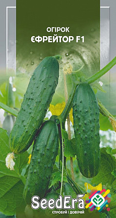 Мінімальна кількість для замовлення - 10 штук. Опис продукту: Раннеспелі гібриди огірка. Вегетаційний період від сходів до початку плодоношення триває 40-45 днів. Плоди велико-бугорчасті, чорношипі, мають інтенсивно-зелене забарвлення, довжиною 9-11 см, діаметром 4-4,5 см, вагою 80-100 грам, відпов...