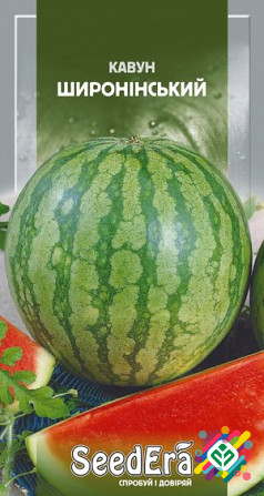 Мінімальна сума замовлення на насіння становить 300 грн, а мінімальна кількість - 10 штук. Сорт кавуна відповідає смаку любителів солодкого. Цей ранньостиглий сорт має вегетаційний період від сходів до технічної спелості тривалістю 65-75 днів. Плоди цього сорту є кулястими, з тонкою шкірою, темно-...