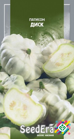 Мінімальна сума замовлення – 300 грн. Мінімальна кількість: 10 штук. **Білий диск** – найкращий вибір для домашньої кулінарії. **Технічні характеристики:** - Вага плоду: до 250 г - Терміни дозрівання: ранньостиглий - Колір плоду: білий Плоди білого кольору у формі диска з ніжною білою м'якоттю ід...