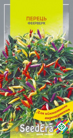 Мінімальна сума замовлення - 300 грн. Мінімальна кількість - 10 шт. Декоративна культура, яка ідеально підходить для вирощування у горщиках. Рослина досягає висоти до 40 см з діаметром культури до 1 см. Колір плодів - суміш жовтого, помаранчевого, червоного та фіолетового. Ця культура має багато ма...