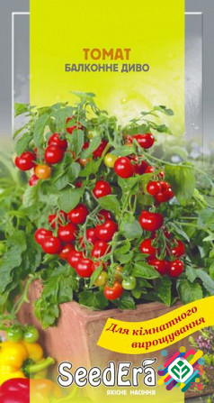 Мінімальна сума замовлення становить 300 грн, а мінімальна кількість - 10 штук. Технічний опис: Назва: Компактний балконний томат. Висота куща: до 30 см. Діаметр плоду: 2,5-3 см. Колір плоду: Жовтий. Термін від посадки до плодоношення: 60-70 днів. Тип куща: детермінантний. Характеристики плоду: зол...