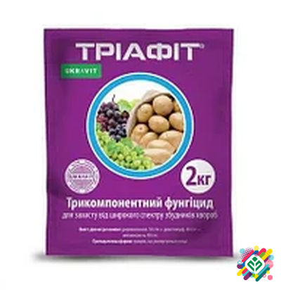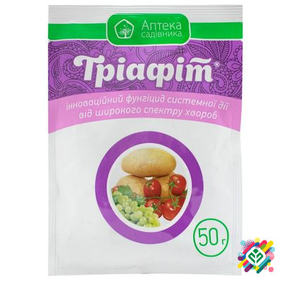 Мінімальна сума замовлення: 350 грн Упаковка: 25 г, 50 г, 250 г Триафіт 25 г Укравіт є інноваційним трьохкомпонентним фунгіцидом, призначеним для профілактики та захисту овочевих культур, винограду, сої, соняшнику, цибулі та інших культур від мілдью, оідіуму, фітофторозу, макроспоріозу, мучнистої р...