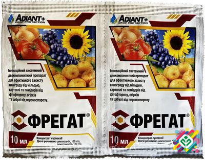 Мінімальна сума замовлення 350 грн. Інноваційний системний двокомпонентний препарат для ефективного захисту винограду від мілдью, картоплі та помідорів від фітофторозу, огірків та цибулі від пероноспорозу. Препаративна форма: концентрат суспензії. Вміст діючої речовини: цимоксанил - 125 г/л, димето...