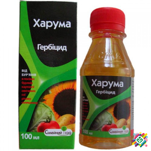 Мінімальна сума замовлення - 350 грн Упаковка: 100 мл, 500 мл «Харума» - високоефективний послідовсходовий гербіцид із селективною дією, ефективно бореться практично з усіма видами однорічних та багаторічних злакових коренеплодів на посівах цукрової та столової буряків, моркви, білої капусти, цибул...