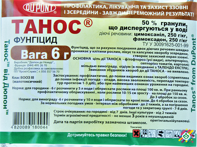 Комбінований фунгіцид профілактичної та терапевтичної дії для захисту овочевих культур та винограду від комплексу хвороб. Переваги: - пригнічує активні постінфекційні стадії розвитку грибів, запобігає утворенню спор; - забезпечує захист незахищених частин рослин та нового приросту; - має тривалу за...