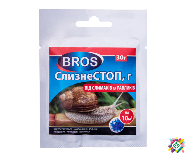 Високоефективний та швидкодіючий препарат для захисту посадок овочевих, ягідних, плодових культур, виноградників та квітів від слизняків та улиток. Гранульована приманка використовується в дачних господарствах та на ділянках. Механізм дії препарату СлизнеСТОП: Слизнестоп має кишкове та контактне вп...