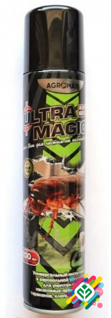 Ультра Магік аерозоль - універсальний інсектицид для утилізації мурах, тараканів, клопів, блох. Цей засіб має подвійну дію та є ефективним для знищення будь-яких плазунів і летючих комах. Готовий до використання в побуті та комунальних умовах. Забезпечує миттєву дію та тривалий залишковий ефект (21 ...