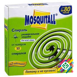 Засіб від комарів Mosquitall - універсальний засіб для захисту, який тепер можна використовувати навіть на відкритому повітрі, тим більше, що ціна на такі спіралі дуже низька. Час ефективної дії однієї спіралі - 7 годин. Вони захищають від комарів, мошок та москітів. У кожній упаковці - 10 спиралей....
