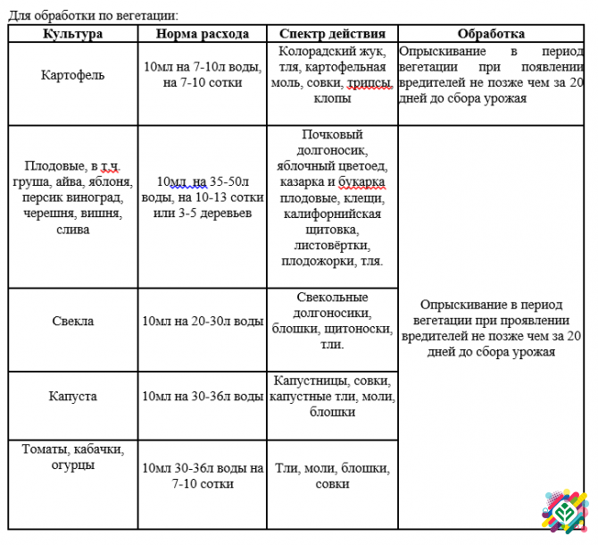 Універсальний інсектицид системного дії застосовується на посівах різних сільськогосподарських культур овочевого та зернового типу з метою знищення широкого спектру жуків та щитківців. Препарат проникає в рослину та рівномірно поширюється по всіх її частинах, комахи, які поїдають листя, неодмінно ги...