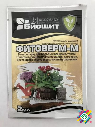 Мінімальна сума замовлення - 350 грн. Акарицид інсектицид «Фітоверм» - агробіологічний препарат для боротьби та знищення кліщів, тлі, трипсів, листожерущих гусениць на овочевих, фруктових, ягідних та квіткових культурах, а також кімнатних рослинах. Призначений для особистого господарства. Діюча ре...