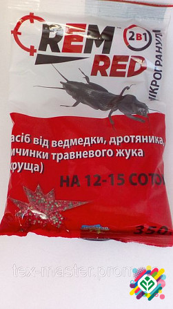 Мінімальна сума замовлення - 350 грн. Мікрогранула "REM RED" є ефективним засобом у боротьбі з шкідниками, безпечним для людини та бджіл. Цей засіб від медведки має кілька переваг: - Великої упаковки достатньо для обробки ділянки площею 12-15 соток; - Знищує личинки медведки, травневого жука, пров...