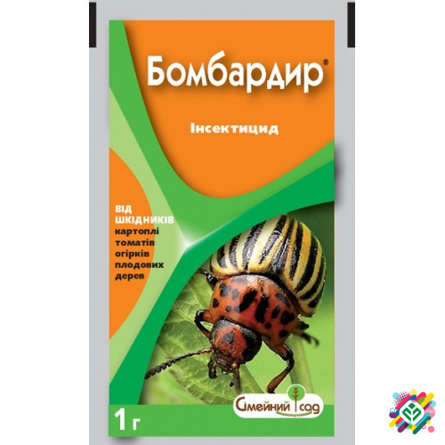 Мінімальна кількість - від 4 шт. "Бомбардир" - системний інсектицид контактно-кишкової дії, призначений для захисту саджанців картоплі, помідорів, баклажанів, огірків від колорадського жука. Діє на дорослих комах та личинок на всіх стадіях розвитку. На яблунях та грушах добре контролює таких шкідник...