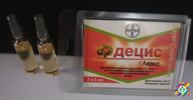 Мінімальна сума замовлення 300 грн. Системний контактно-шовковидний інсектицид для захисту багатьох с/г культур від комплексу шкідників. Деціс діє на нервову систему шкідника, блокуючи його живлення, а для деяких видів шкідників має додатковий відлякуючий ефект. Діюча речовина: дельтаметрин. Пер...
