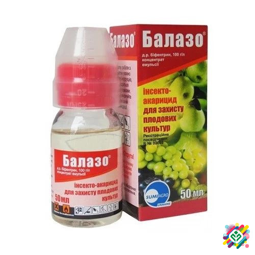 **Інсектицид-акарицид Балазо від Sumi Agro** Балазо є пиретроїдним інсектицидом контактно-кишкової дії, призначеним для обробки фруктових дерев та винограду від комах-шкідників, включаючи кліщі. Діюча речовина біфентрин впливає на нервову систему комах, паралізуючи їх, що призводить до припинення ї...