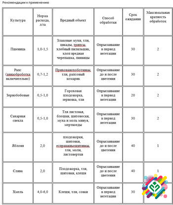 Системний інсектоакарицид, що має контактно-кишкову дію. Діюча речовина диметоат інгібує фермент ацетилхолінестеразу в збудливих синапсах ЦНС. Препарат високоефективний проти гризучих, сосучих та мінеральних шкідників з різних рядів комах (рівнокрилі, жорсткокрилі, чешуєкрилі, двокрилі), а також вид...