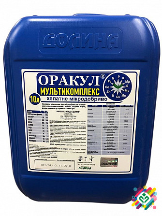 Хелатне добриво Оракул Мультикомплекс NPK 18.4/6.6/4.4 є високоефективним та універсальним добривом, яке використовується для вирощування овочів, плодово-ягідних та декоративних рослин. Завдяки хелатній формі це добриво повністю засвоюється рослинами. Препарат покращує якість та тривкість готової пр...