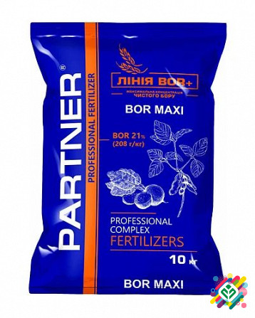 BOR MAXI рекомендується застосовувати для листового підживлення. Це повністю водорозчинний продукт і сумісний з більшістю СЗР. Норма внесення від 0,5 кг до 0,75 кг на 1 га (200 л води робочої рідини). Склад: В - 21% BOR MAXI - це еталонний продукт як за концентрацією бору, так і за його якістю. Бор...