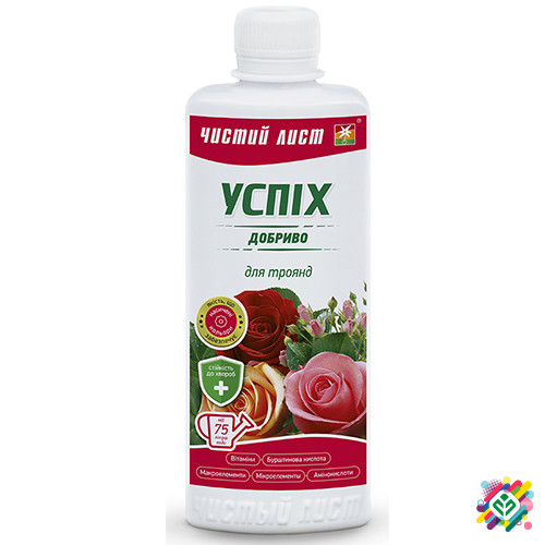 "Успіх для Роз" - спеціалізований препарат для інтенсивного живлення троянд, які виростають у горщиках, балконних ящиках, бочках на терасах та двориках-патіо, а також невеликих садових кущів троянд. Компоненти добрив забезпечують трояндам міцний імунітет, чисті листя та буйне цвітіння. Перевага сер...