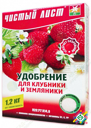 Чистий лист - кристалічне добриво для полуниці та земляники (1,2 кг) - високоефективне мінеральне добриво, що містить усі необхідні мікро- та макроелементи, вітаміни для повноцінного росту та розвитку рослин. Не містить хлору. Переваги: - Збільшує врожайність, цукристість, розмір ягід, прискорює до...