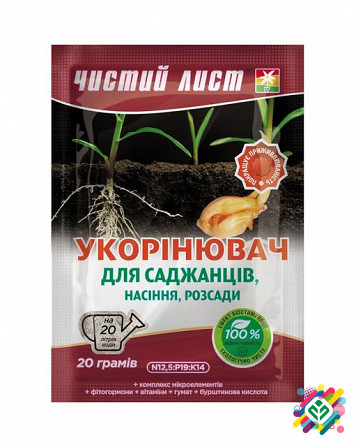 Чистий лист - це кристалічне удобрення-стимулятор росту для сажанців, насіння та розсади, упаковане у формі 20 г. Він є високоефективним, концентрованим, мінеральним добривом, що містить усі необхідні для рослин елементи у доступних формах. Переваги: - Зміцнює життєздатність рослин. - Підвищує енер...