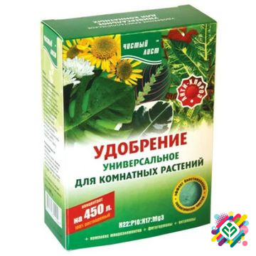 Чистий лист - кристалічне універсальне добриво для кімнатних рослин (300 г) - високоефективне, концентроване, мінеральне добриво, що містить всі необхідні для живлення рослини елементи в доступних формах. Переваги: - Має високу якість плодів і квітів. - Відсутність хлорозу завдяки наявності заліза ...