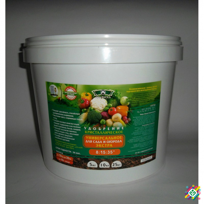 8 : 15 : 35+МЕ Комплексні мінеральні водорозчинні добрива з мікроелементами у формі хелатів. Основні характеристики: - миттєва розчинність (навіть у холодній воді) - відсутність хлоридів та нітратів - низький витрати від 2-5 кг/га - простота в застосуванні - мікроелементи (хелати ЕДТА) - сумісні з ...