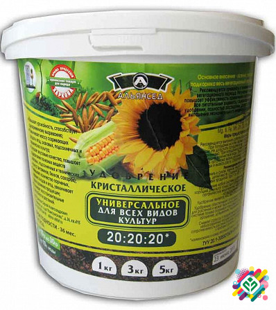 Універсальне добриво ТМ "Альянсед" забезпечує повноцінне живлення рослин і може бути використане в будь-якій системі зрошення (кореневе підживлення, крапельне зрошення, дощування, гідропоніка тощо). Це ідеальне добриво, яке забезпечує найкращі результати: - стимулює обильне і тривале цвітіння, збіль...
