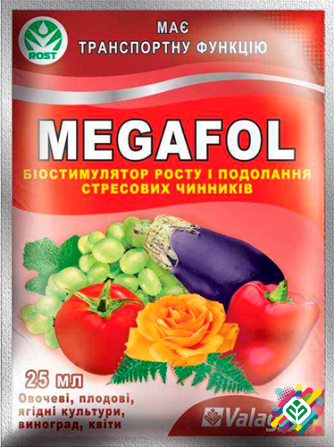 Спеціальний антистресовий агрохімікат МЕГАФОЛ, виготовлений з рослинних амінокислот у поєднанні з калієм, бетаїном, полісахаридами та прогормональними сполуками. Основні компоненти МЕГАФОЛА отримані шляхом ферментного гідролізу та ексклюзивної технології «Wave» з високопротеїнових рослинних субстрат...