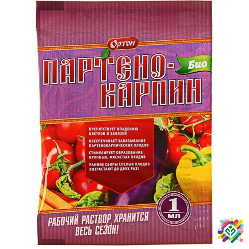 Стимулятор плодоутворення для вирощування томатів, перців та баклажанів. Основний ефект препарату "Партенокарпин-БІО" полягає у стимуляції зав'язування плодів томата, баклажана та перцю, у зменшенні відпадання квітів і дрібних зав'язей, швидкому зростанні плодів та прискоренні їх дозрівання. За дан...
