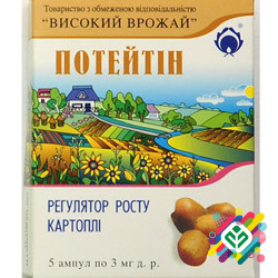 Препарат для обробки картоплі та оприскування плантацій Цей препарат застосовується в технології вирощування картоплі для обробки клубнів та оприскування плантацій. Він є малотоксичним. Діюча речовина - комплекс 2,6-диметилпіридіна-1-оксиду з янтарною кислотою. Вплив на рослини: стимулює ріст та р...