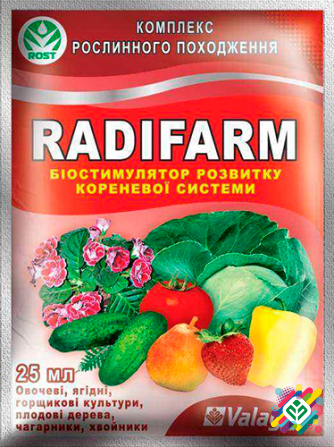 Спеціальний біостимулятор для розвитку кореневої системи. РАДІФАРМ - це спеціальний комплекс, що містить полісахариди, стероїди глюкозидів, амінокислоти та бетаїн, збагачений вітамінами та мікроелементами, розроблений для розвитку бічних та додаткових коренів (вторинна коренева система), забезпечую...
