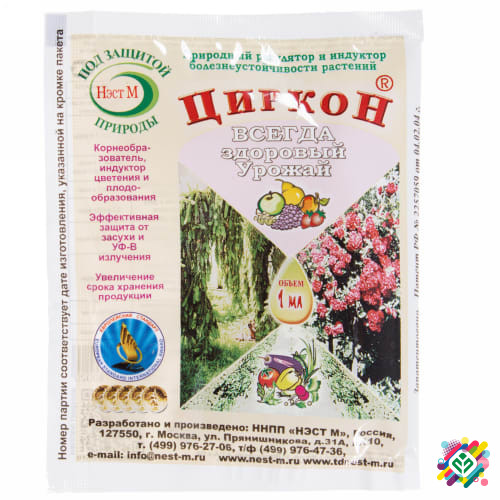 Біологічний імуностимулятор, кореневий утворювач, індуктор цвітіння, отриманий з рослинної сировини - Циркон. Застосування Циркону забезпечує: - Збільшення всхожості та прискорення проростання насіння; - Прискорення дозрівання на 5-10 днів; - Збільшення врожайності на 35-60%; - Покращення якості ...