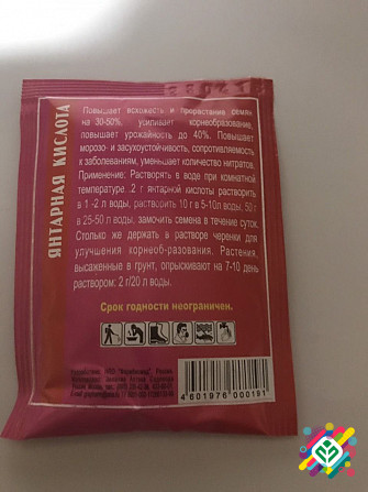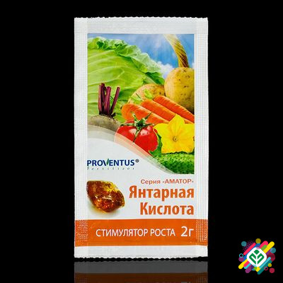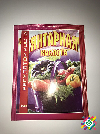 **Регулятор росту для рослин:** Регулятор росту є стресостійким адаптогеном і помірним активатором росту, який поліпшує вбирання речовин з ґрунту. **Опис:** - Янтарна кислота діє на рослини як стимулятор, підвищуючи їх стійкість. - Використовується як для замочування насіння, так і для оприскуванн...