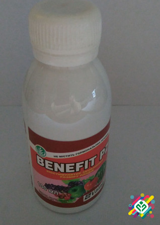 Біологічний препарат стимулює ріст рослин та збільшує масу плодів. Засіб збагачує культури амінокислотами та вітамінами, а також робить більш однорідною вагу та форму плодів. Препарат "Бенефіт" розроблений на основі рослинних компонентів і не містить гормональних речовин. В його склад входять лише о...