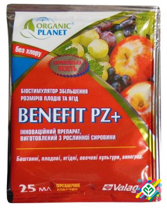 Benefit PZ є спеціальним препаратом, який збільшує розмір плодів шляхом природних процесів, не знижуючи смакових та технологічних якостей рослин. Цей продукт сприяє прискоренню ділення клітин та утворенню нових клітин на етапах цвітіння, після зацвітання та в період активного росту плодів, що призво...