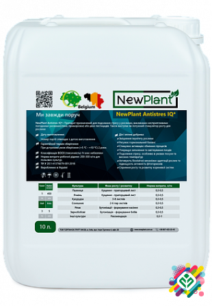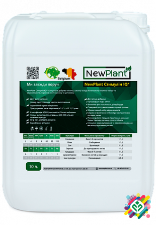 NewPlant Стимулін IQ - біоактиватор рослин. Це концентрована суспензія, призначена для стимулювання росту та розвитку рослин. Основні функції продукту: - Пришвидшення поділу клітин - Зниження фітотоксичності дії гербіцидів - Стимуляція росту вегетативних органів рослин - Запобігання виляганню стеб...