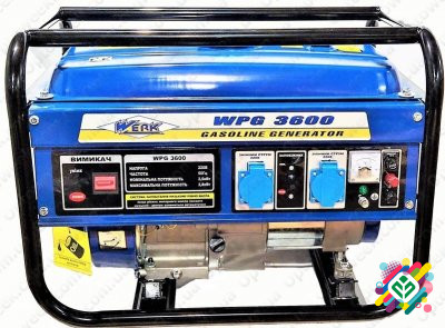 **Технічні характеристики бензинового генератора:** - **Тип:** бензиновий - **Запуск:** ручний - **Число фаз:** 1 - **Генератор:** - Номінальна потужність: 2300 Вт - Повна потужність: 2800 ВА - Сила струму: 10 А - **Двигун і паливо:** - Об'єм двигуна: 196 см³ - Потужність двигуна: 6....