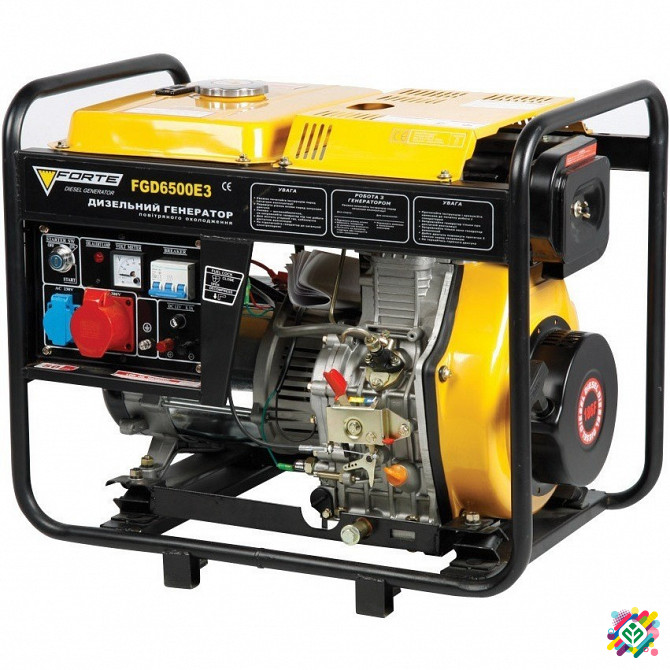 **Технічні характеристики:** - Тип генератора: Дизельний - Тип двигуна: 4-тактний - Кількість фаз: 1 - Об'єм паливного бака: 15 л - Тип запуску: Ручний стартер, Електронний стартер - Вага: 175 кг - Частота: 50 Гц - Об'єм двигуна: 499 куб. см - Витрата палива: 2,7 л/год - Тип палива: Дизельне - Ріве...