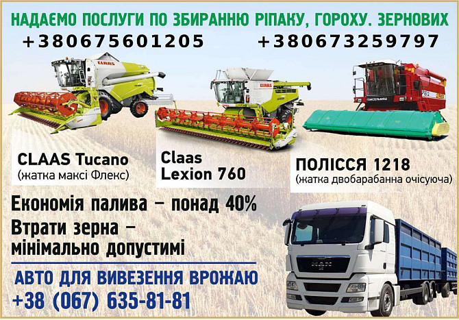 Збирання ЗЕРНОВИХ, РІПАКУ, ГОРОХУ - CLAAS Lexion 760 - CLAAS Tucano 470 - Полісся 1218 УСІ ЖНИВАРКИ Будь-яка форма оплати +380675601205