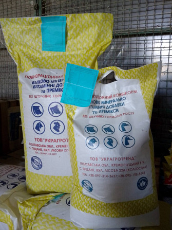 Продаємо комбікорм, премікс та БВД: -Премікси для поросят, курей та бройлера 2,5% - 1900 грн./25 кг ; 773 грн./10 кг. -БВД для поросят старт 25% - 870 грн./25 кг ; 355 грн./10 кг. -БВД для поросят гровер/фініш 15% - 750 грн./25 кг. -БВД бройлер фініш 25% - 870 грн./25 кг ; 355 грн./10 кг. -БВД...