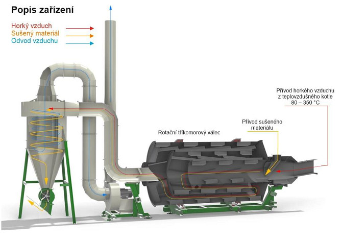 Барабанные сушилки для биомассы (Чехия) Назначение: сушка опилок, стружки, щепы, торфа, навоза, помета, сена/ соломы и др. биомассы. Модель: SBS5/SBS10/SBS20/SBS30/SBS30+. Производительность по входящему сырью, влажностью 45%, кг/час: 800 /1650/2800 / 4500/5900. Производительность по входящему с...